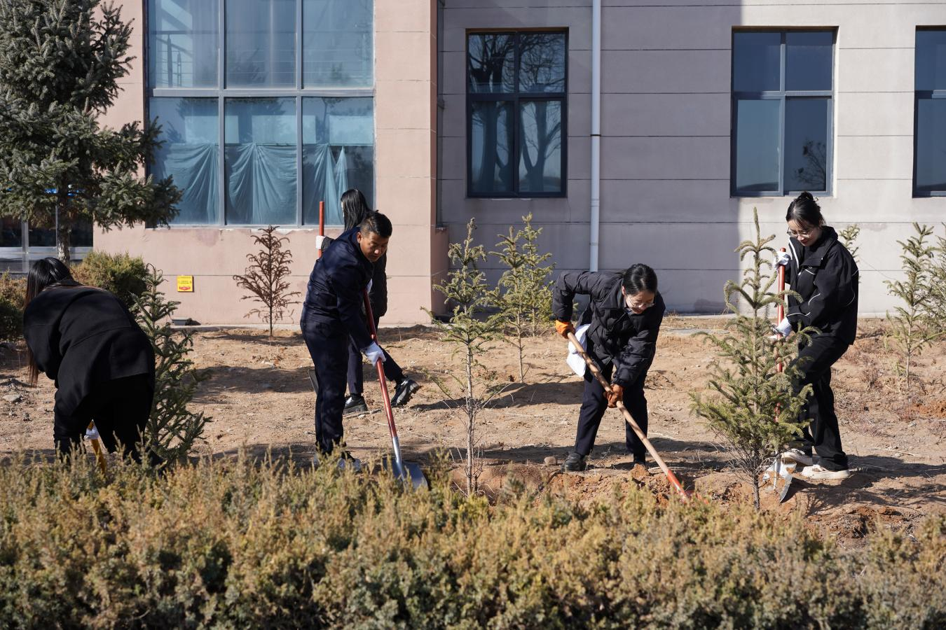 活動(dòng)中,大家相互配合,三五人一組,揮鍬鏟土、扶苗填壓,在揮灑汗水的同時(shí)感受著勞動(dòng)帶來(lái)的樂(lè)趣,整個(gè)植樹(shù)活動(dòng)現(xiàn)場(chǎng)呈現(xiàn)出一派熱火朝天的勞動(dòng)景象。經(jīng)過(guò)大家的共同努力,一棵棵小樹(shù)苗迎風(fēng)屹立,在明媚的春光中煥發(fā)出勃勃生機(jī),形成一道靚麗的風(fēng)景線(xiàn)。(周萌萌)