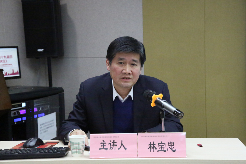 按照集團公司黨委《黨的十九屆四中全會精神宣講方案》的統一部署,12月31日,陜煤集團黨的十九屆四中全會精神宣講團成員、陜北礦業公司黨委副書記、紀委書記林寶忠走進新型能源公司,為廣大黨員干部員工作黨的十九屆四中全會精神專題宣講。公司領導班子成員,中層干部、機關全體員工和通過視頻直播參加會議的基層各單位全體干部員工聆聽了宣講會。