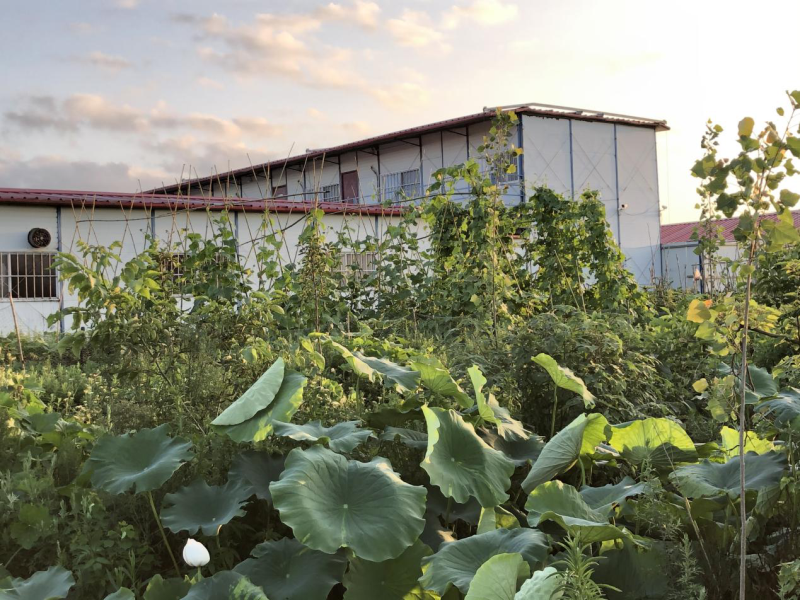 當你來到淮源熱電聯(lián)產(chǎn)項目部西北側(cè)的一片空地時,讓人心頭不由得一動:映入眼簾的是一片綠色,遠處傳來公雞的鳴叫,不時的有一陣呀呀呀的鴨叫聲,突然會看到幾只野鳥被大白鵝攆著向遠處飛去,水面上偶爾躍起一兩條魚兒,連片的荷葉中伸出三兩只含苞待放的荷花,好一派世外桃源的景象。這就是淮源黨支部利用業(yè)余時間自費建設(shè)的“黨員愛心農(nóng)場”。