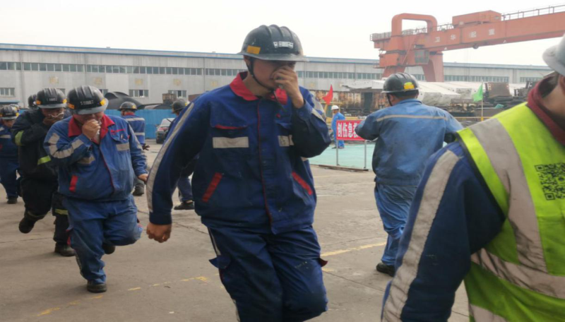 “演練開始!”隨著總指揮一聲令下,應急演練拉開了帷幕。首先是緊急逃生項目,虛擬火災信號剛發出,職工們手捂口鼻,貓著腰,按照演練要求與注意事項,快速有序地進行疏散逃生。