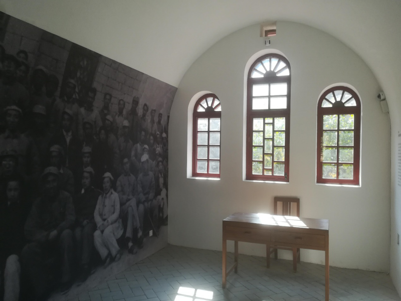 土黃色的墻壁襯映著土紅色的木門,好像被沉浸在歷史的一抔迷蒙的煙云之中,讓來這的游客不禁想起中國抗日戰爭的歲月。