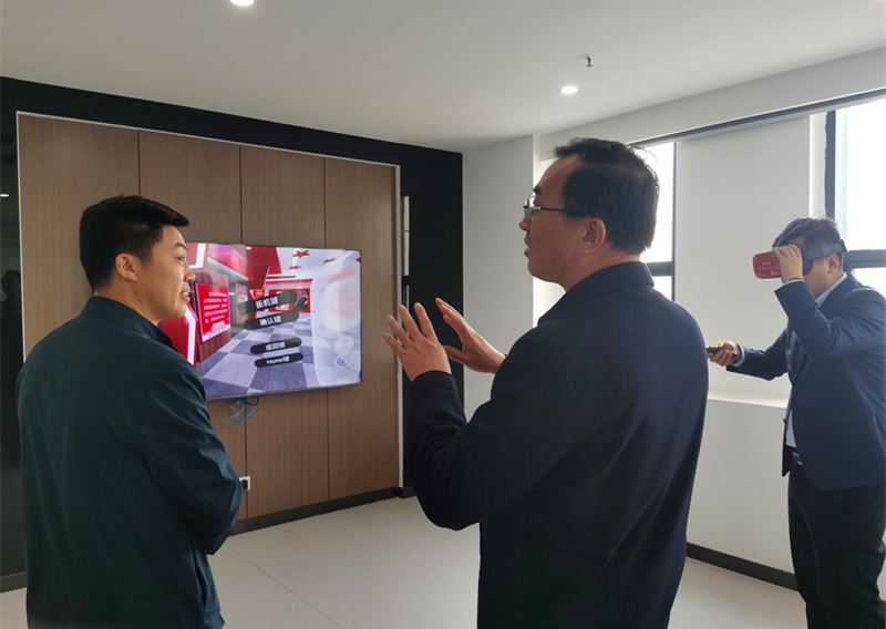 隨后,指導(dǎo)組到公司智慧展廳現(xiàn)場體驗(yàn)觀摩了公司“VR百年交互式體驗(yàn)黨史館”,對公司“互聯(lián)網(wǎng)+智慧黨建”這一特色做法給予了高度評價。