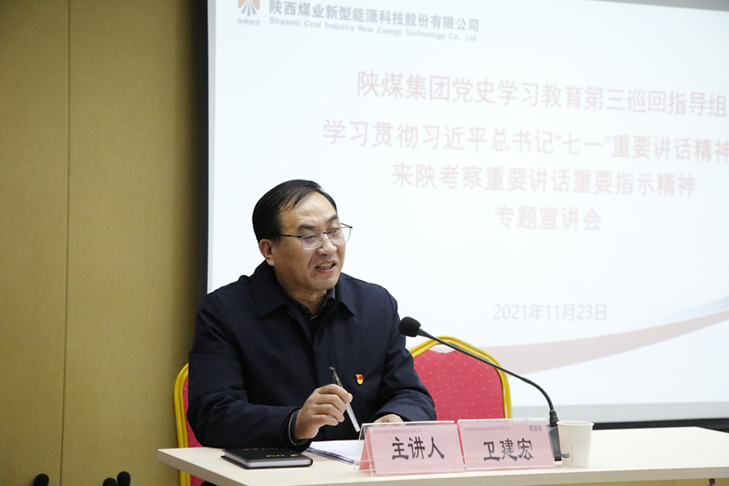 11月23日,陜煤集團黨史學習教育第三巡回指導組組長衛建宏到新型能源公司開展學習貫徹習近平總書記“七一”重要講話精神和來陜考察重要講話精神宣講。公司領導班子、中層以上管理干部、機關全體職工,西安周邊單位黨政主要領導、黨員及積極分子,共計60余人參加學習。會議由公司黨委委員、紀委書記高小軍主持。