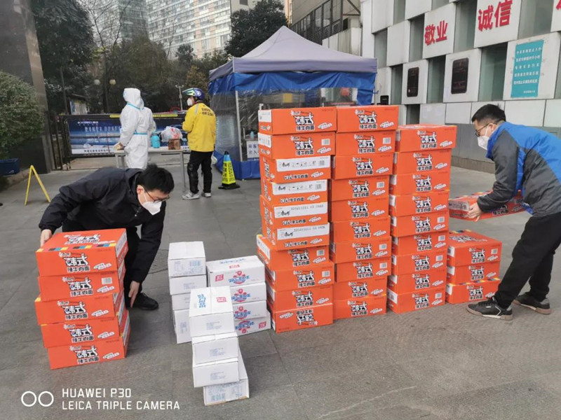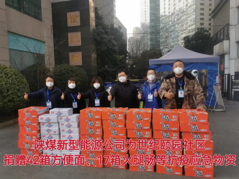 1月10日,新型能源公司為雁塔區世紀頤園社區捐贈42箱方便面、17箱火腿腸等抗疫應急物資。